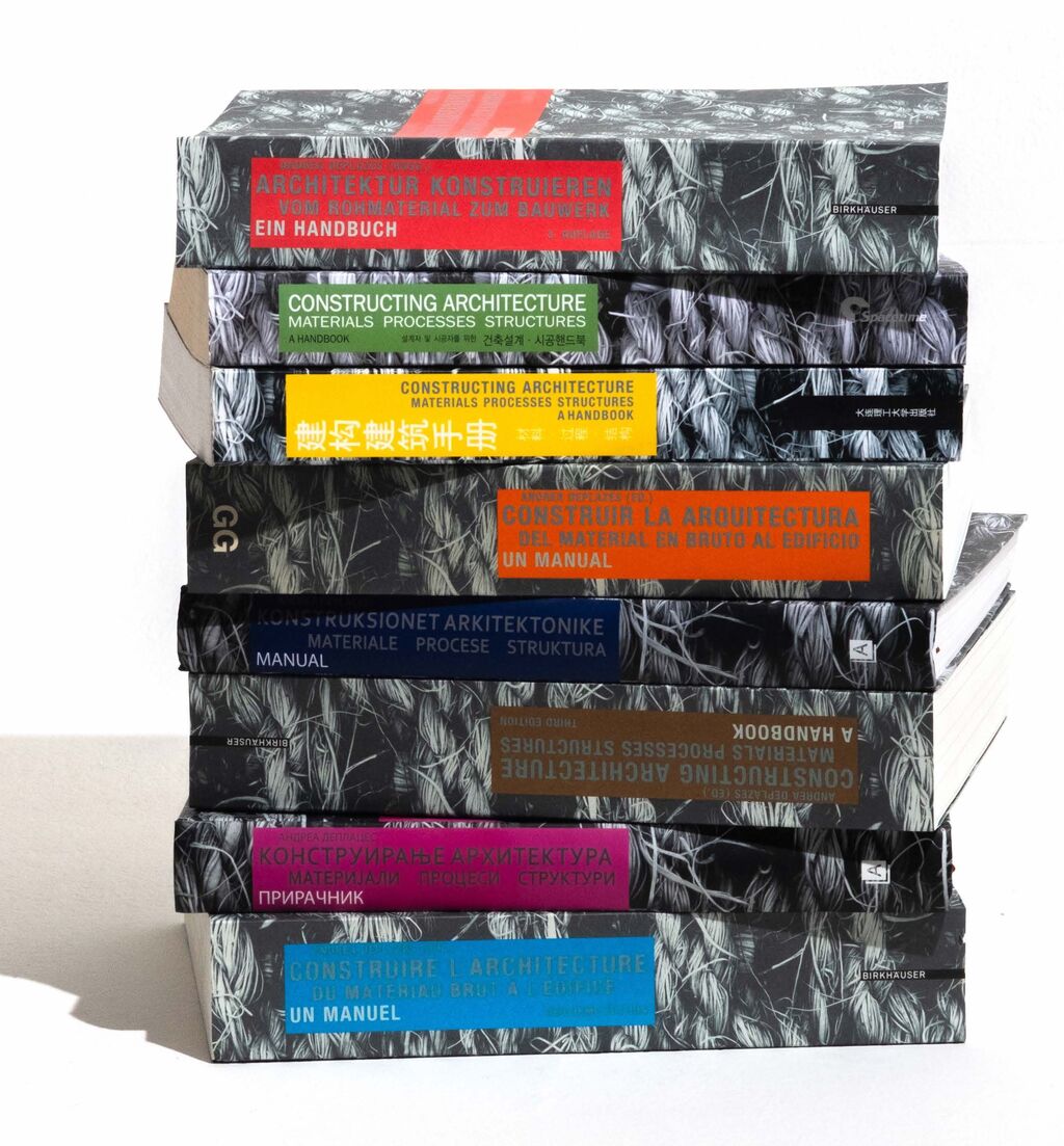 僕がETHで所属している教授はAndrea Deplazesという建築構法を専門にしています。もしかしたら辞書のように厚いハンドブックを目にしたことがある建築学生の方もいるかもしれません。日本語版はありませんが、世界各国で翻訳されています。一年生の時に購入してずっと使い続ける、スイスの事務所には必ずある必須のハンドブックです。