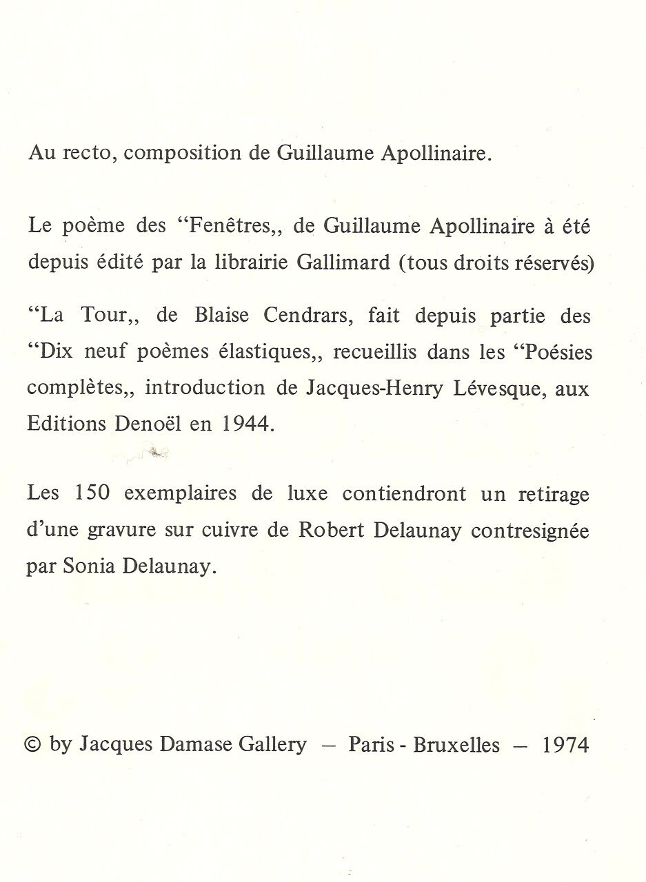Le poeme des ‘‘Fenetres,, de Guillaume Apollinaire a ete depuis edite par la librairie Gallimard (tous droits reserves)