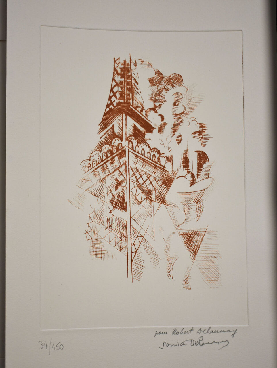 1974年にJacques Damase Galleryから1150部が発行されたもので、その内1から150までの番号が付された150部には、妻で同じく作家だったソニア・ドローネー(Sonia Delaunay)の署名がなされた、ロベール・ドローネーの銅版画が挿入されています。