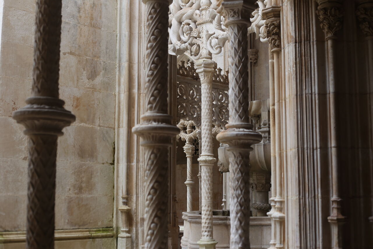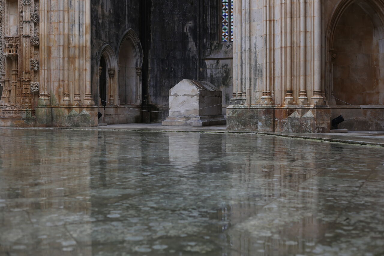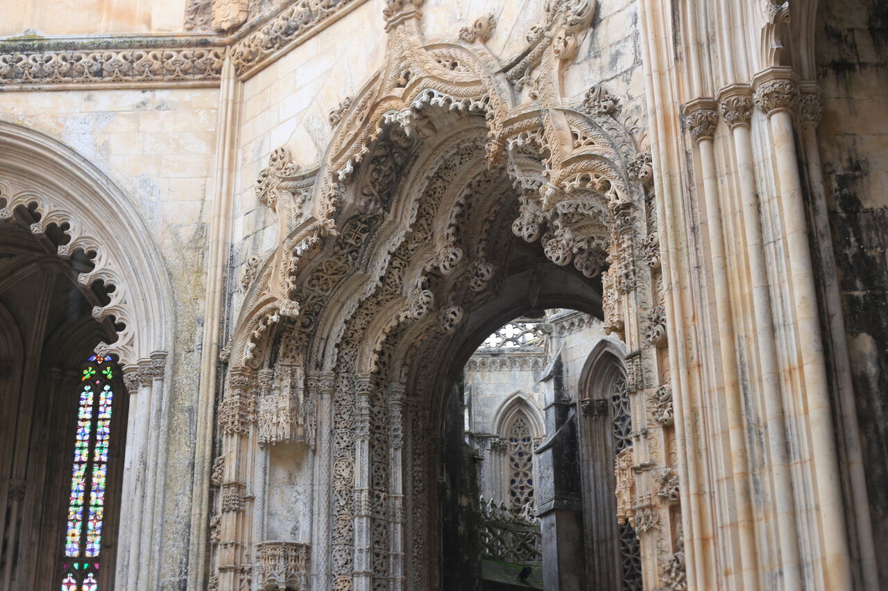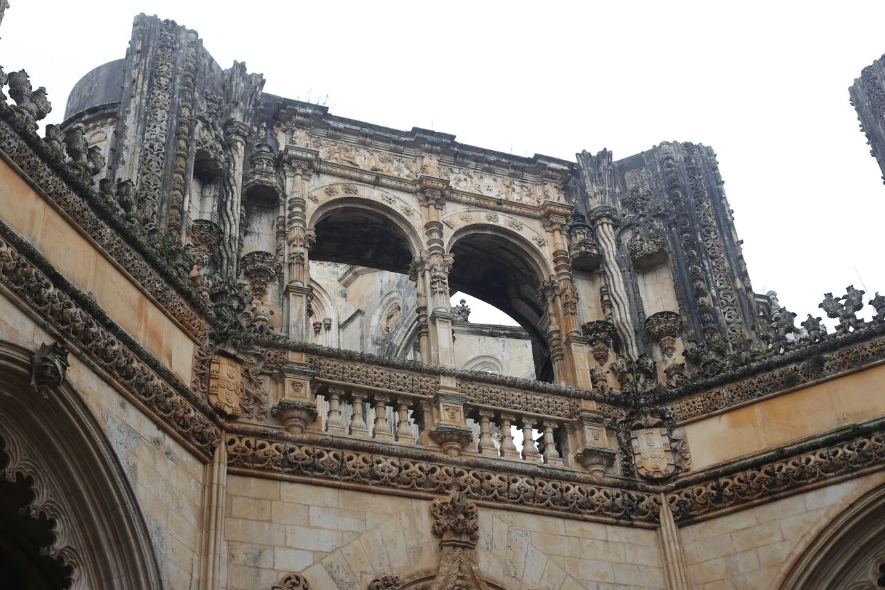 バタリャ修道院は建設期間が2世紀に及ぶため、ゴシックをベースにしながらルネサンスも混ざって行き、後半にマヌエル様式が入ってくる。そのため装飾具合に適度なムラがあり、それがちょうど良い。礼拝堂は完成を見ずに放棄され屋根がないのだけれど、この美しさと言ったらない。その時は小雨が降っていて、屋内だったはずの床にうっすら水溜まりができていて、タルコフスキーの映画のような静謐さ。雨ざらしで黒ずんだ細かいレリーフはアンコール・ワットのようでもある。命を賭けて運転してきた甲斐があった。