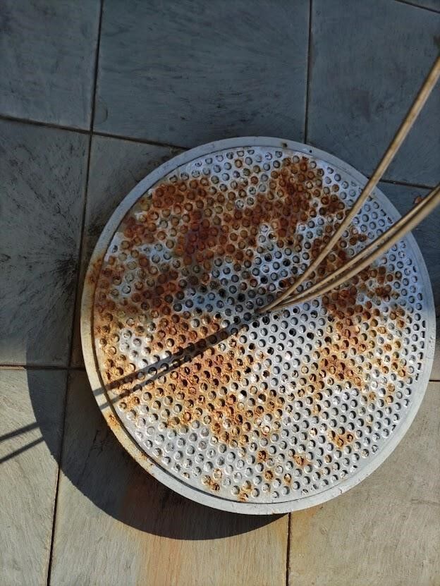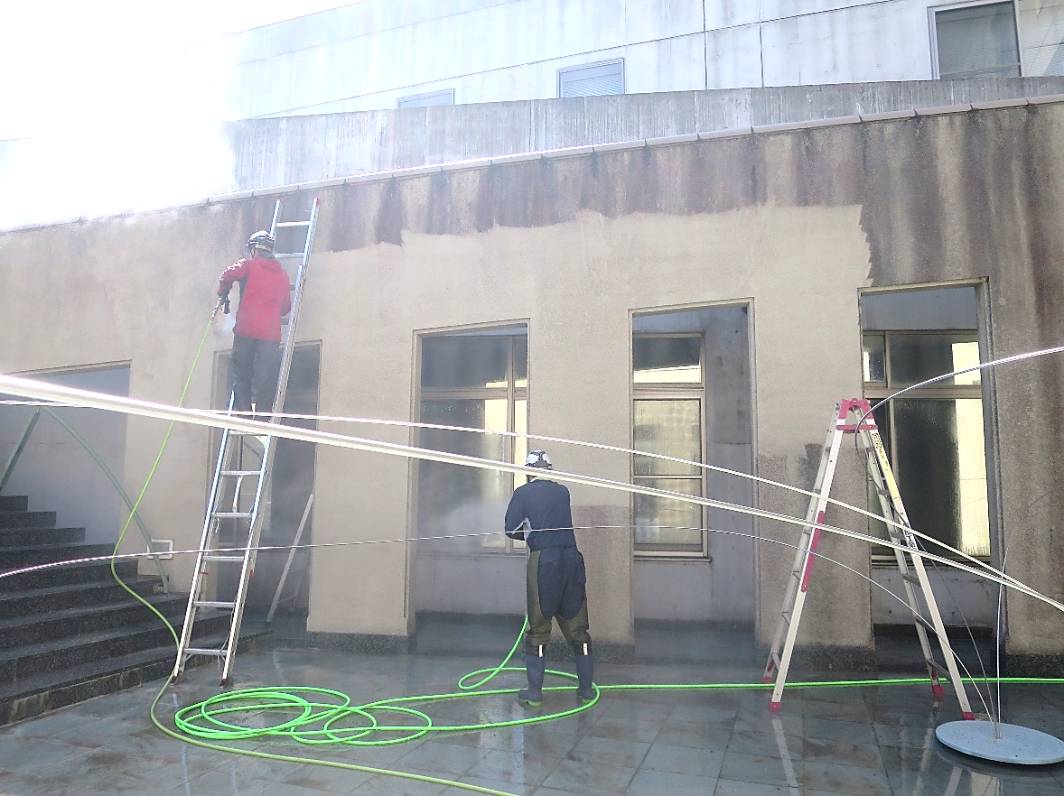 今回<うつろひ>本体をいくら磨き上げたとしても、容器としての空間がサビで汚れていては見栄えがしない。そこで東大事務方の賛意を得て、知人の高圧洗浄業者に染みこんだサビをきれいに洗い流してもらったのだった。