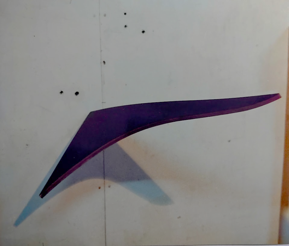 『ABST text 9』最終号には杣木の抽象8つの自己原因を挙げた。そのうちの一つが1986年に磯崎邸で見た『GA ARCHITECT 5 』誌 Zaha Hadid特集のことだった。シュプレマティスムの飛翔体絵画を継承したザハ・ハディドの香港ヴィクトリア・ピークコンペ一等案である。山脈に沿い飛翔する建築体から触発された。この動態図から大いに感化されたものの、1980年代をつうじてモンドリアンばりの垂直水平の厳密静謐な配列を崩せなかった。しかし、工房の足元に散在する端切れの山に目をやると、スケッチでは描いたことのない奇妙な形の切り落としが気になる。それを基底材にして厚みを加え傍系パーツを制作していたのである。