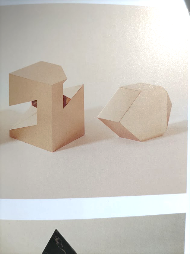 1966年からリテラルな光の万華、真鍮パイプ積層キューブは数多く作られて来たが、1970年代には、ついに開光を閉ざしてキューブそのものと化した。