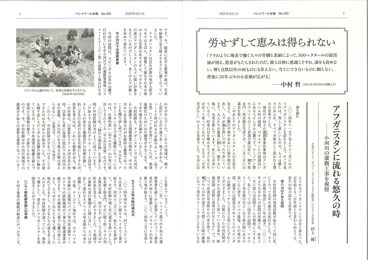 2019年12月4日、中村哲医師がアフガニスタンで銃撃され亡くなられましたが(享年73)、中村医師のあとを村上優会長が引き継ぎ、ペシャワール会は灌漑事業などの継続に全力を挙げています。