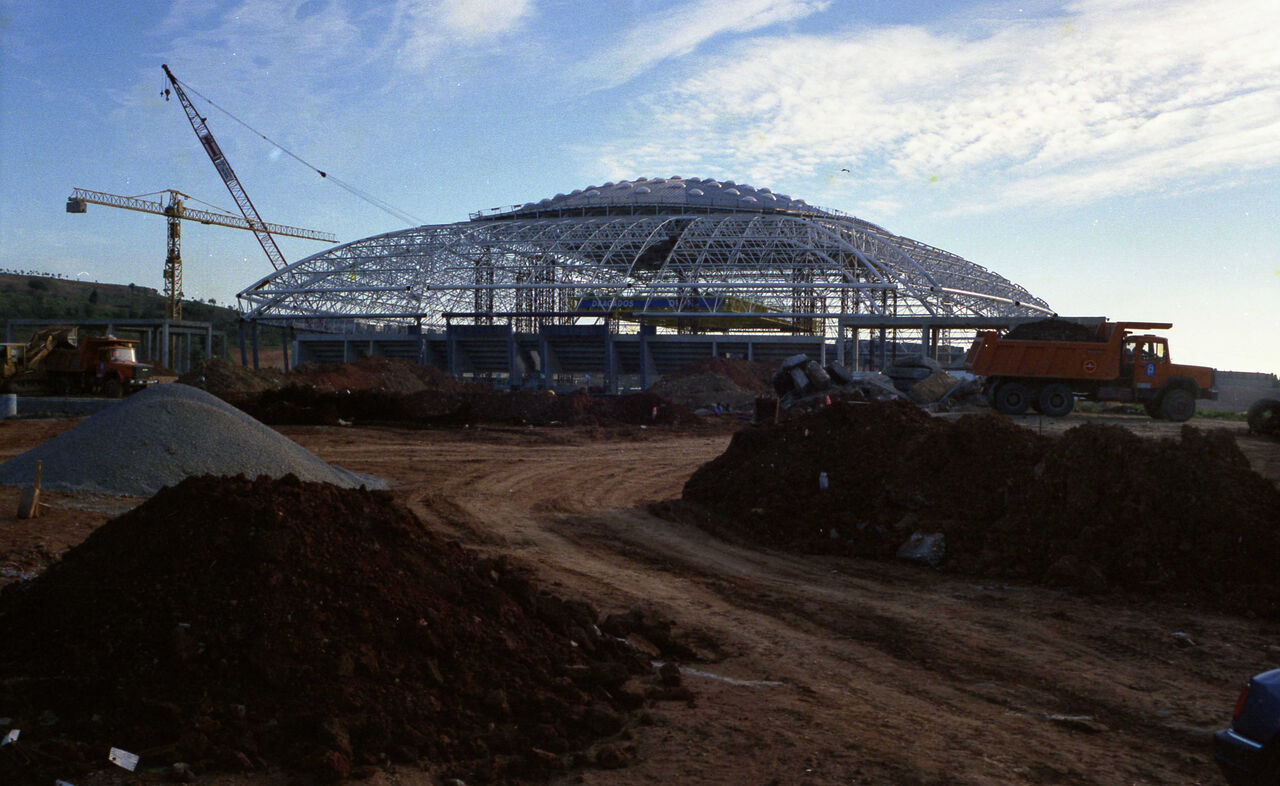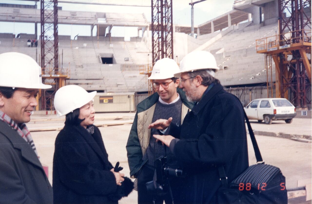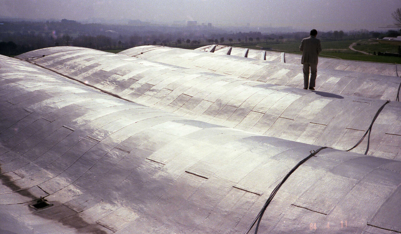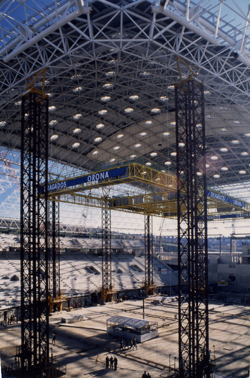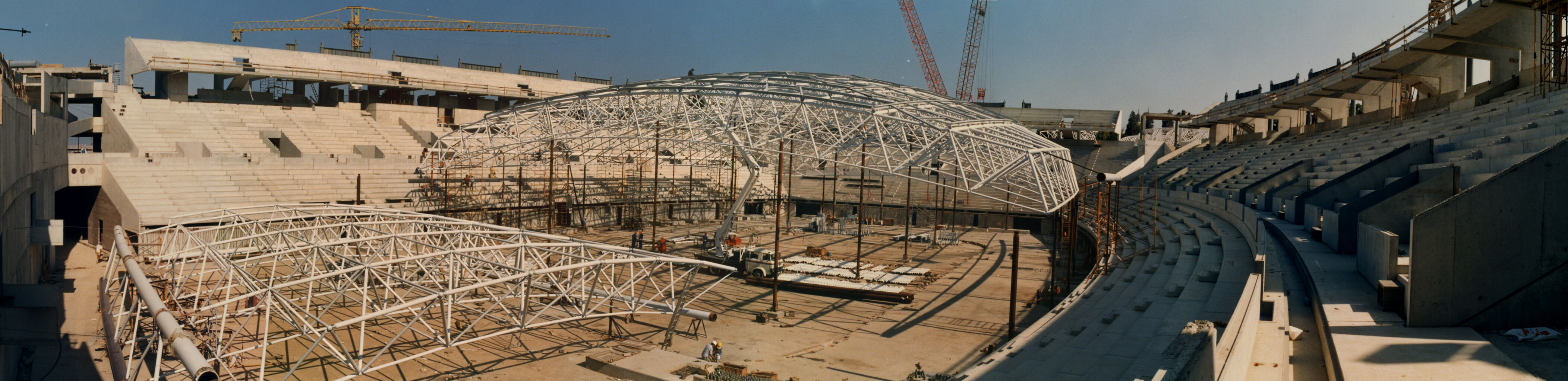 当時のスペインの産業界はまだ完全にアナログで、全てスペース・フレームの部品も手作業で作られていた。同様に我々の図面もトレーシング・ペーパーに手書きのインキングだった。アトリエではDIN A0のフォーマットで描いていたが、スタジアムを担当したコレア=ミラの事務所はまだ長巻のトレペを使い、何メートルもある青焼きのコピーを現場に持ち込んで広げるというようなことをしていた時代だった。