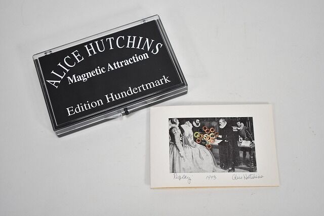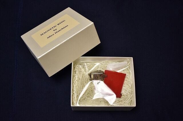 アリス・ハッチンス Alice Hutchins《Magnetic Ring》 マグネットリング、箱、ジュエリーポーチ 指輪:2.5×2.3×H4.0cm/外箱:14.0×11.8×6.3cm 塩見允枝子のサインあり