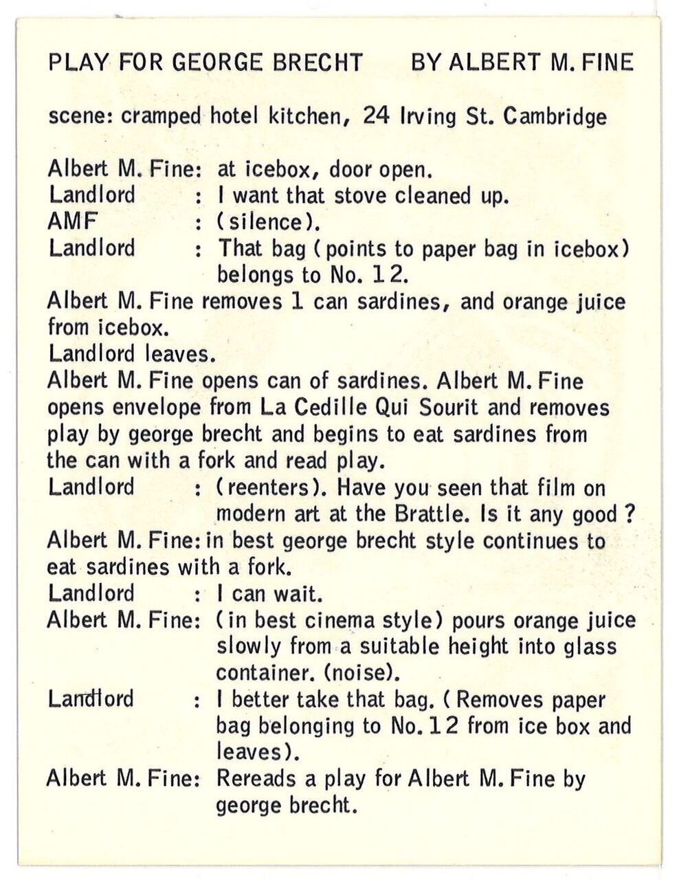アルバート M. ファイン Albert M. Fine《Scale Piece for John Cage》 1966 紙に印刷 5.7×6.4cm Produced by George Maciunas