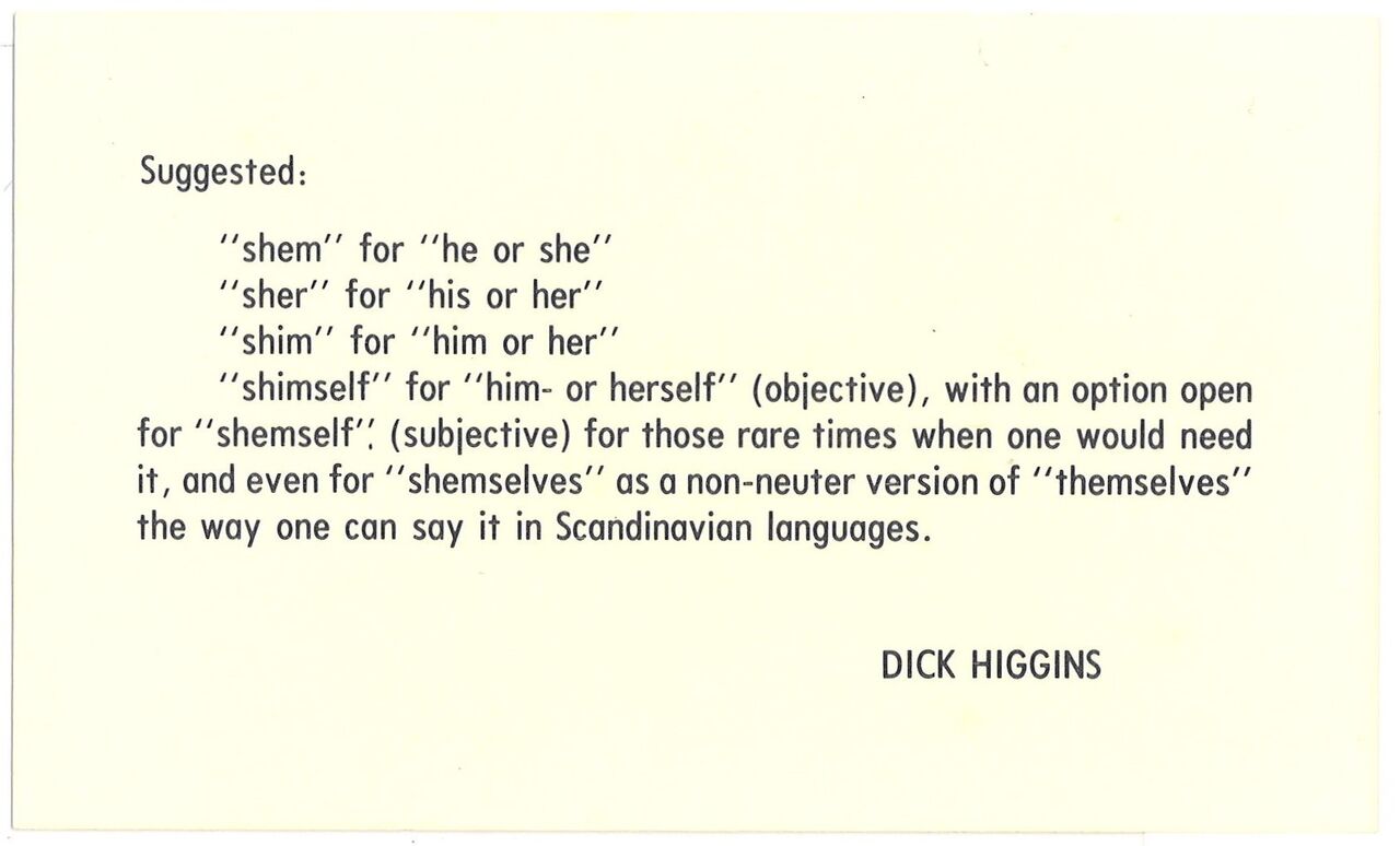 ディック・ヒギンズ Dick Higgins《Suggested》 1977-78 紙に印刷(葉書6枚連作の1枚)8.3×14.0cm
