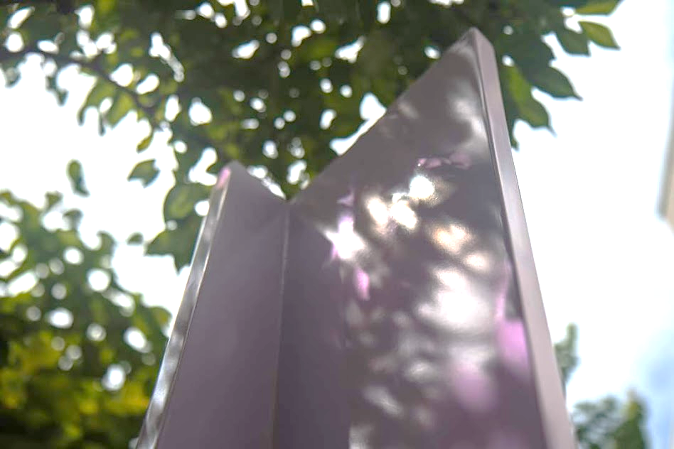 パール系塗料は室内間接光では地色しか見えないが、陽光はパールライラックの透かし効果を現象してくれる。