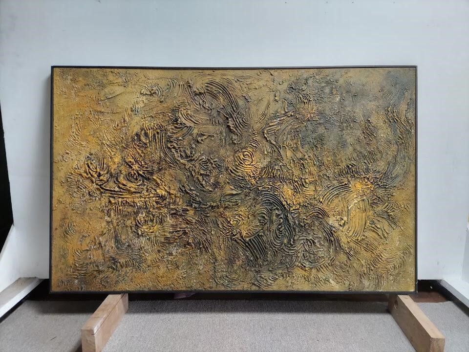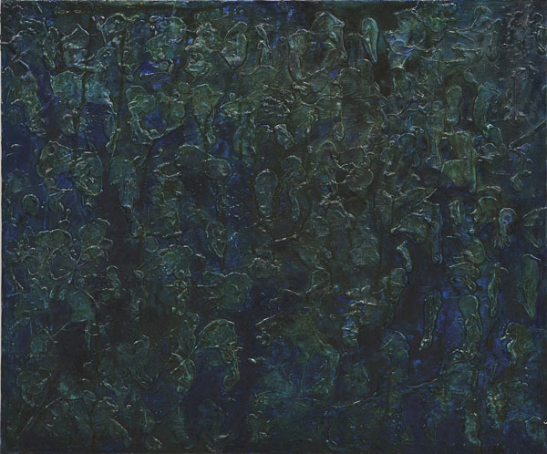 1959年の第1回養清銅画廊個展は宮脇愛子の1957年サンタモニカ・シティカレッジ、カリフォルニア大学遊学後2年後のことであるが、およそカリフォルニアの風土とは縁遠い、宮脇愛子画史でも、もっとも粘質な画面からスタートしている。瞑想というよりは世界が蠢いている。
