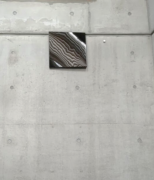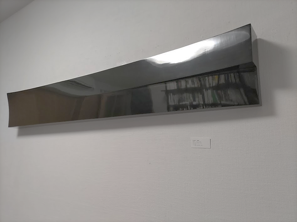 今回「ときの忘れもの」コレクションの趣味が反映され、1981年から<うつろひ>ワークに身が染まった我が目からは<うつろひ>ワイヤーのない宮脇愛子世界は逆に新鮮だった。しかも真鍮キューブ作品はいつも見慣れた光の積層パイプではなく、結晶性のつよい「ホモロジー」にちかい。そう、<MEGU>積層ガラスの中心に穿たれた1cm径丸穴の5㎜ズラシは結晶性と流体性を合わせもつ。そして一番の驚きは「はじめもなく終わりもない」反復画の原型でもあるざわめく画を見たことだった。