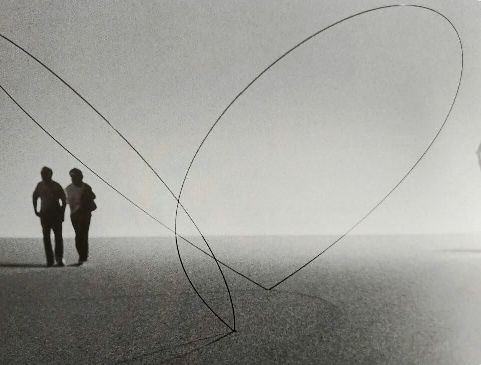 のちに1980年から2000年代を通じてすべての<うつろひ>現場において、ワイヤーを差し込む「角度」こそが最大のアポリアだった。うまくいけばすぐに決まる、たいがい難航して幾度愛子さんの叱咤の声が飛んだことか。マケット宇宙と、現場サイトではかなりズレがある。まずは愛子さんがワイヤーを減らすことによって場は驚くほど豊かになる。基盤位置、差し替え調整がつづく。愛子さんが指示する基板ツイストによって、捻りテンションが加力すると、ワイヤー流線は空間を一気に変容させるのだった。