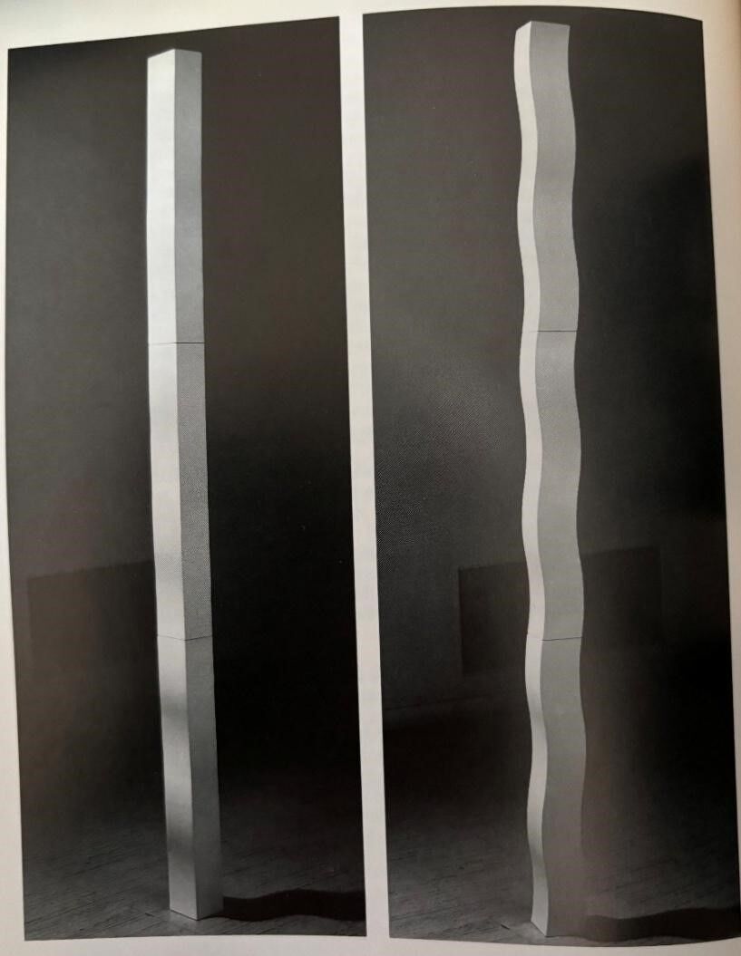 水平垂直の柱状の形を想像して見ている。その時の、垂直の線(4本)は、どこに設定されているのか?実は設定されていないのではないか。「見る」という能動的な行為の度に、線が引き直されるから。