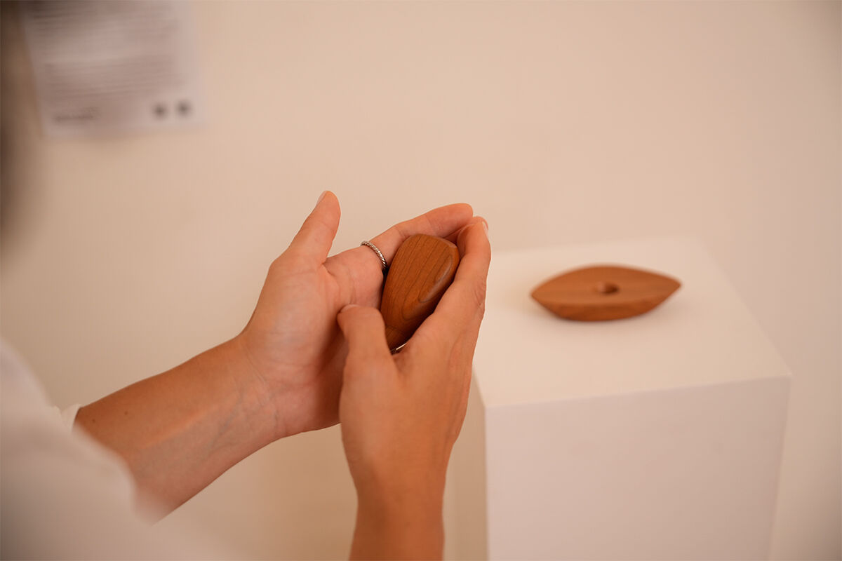 どんなプロダクトであるべきか議論を重ねて、最終案に決まったのは、すくった水の形をモチーフにしたデザインだった。そのコンセプトは冒頭の禅語から取ったものだ。遠く離れてしまったように思える故人は、実はあなたの手の中にいる。両手にぴったりと収まる形をしていて、そのまま包み込んで合掌することができる。その時手に感じる木の優しい感触と温もり。触れていく毎に、木の色は深みを増し、艶やかになっていく。見に来てくれた友人は「小鳥を手に持った時の事を思い出した」と言っていた。小さな木のプロダクトには、魂が宿っている。存在することの尊さは、人であっても物であっても変わらない。