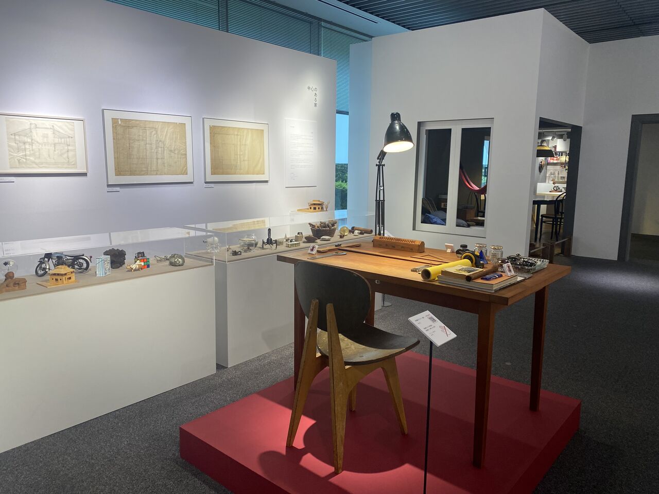 図面、スケッチ、映像、[中心のある家]のダイニング・キッチンの再現、製図に必要な道具類、オブジェのコレクションやデスクや椅子などの展示がありました。椅子は坂倉準三さんデザインで、結婚祝いにいただいたものだそうです。