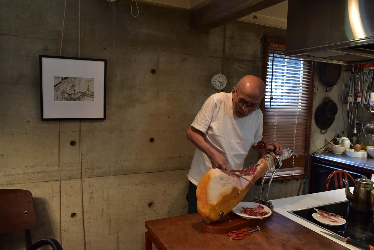 台所はコンパクトで動きやすく、料理人かと思うほどたくさんの道具が吊られており、パスタは麺から手作り、来客が多いから常備しているという大きなハモンセラーノを切り分けてくださったあの日がとても懐かしい。