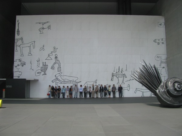 設計した谷口先生が<大半の絵を修正液で消してしまった>という[MIMOCA 丸亀市猪熊弦一郎現代美術館]大壁画の前での集合写真。