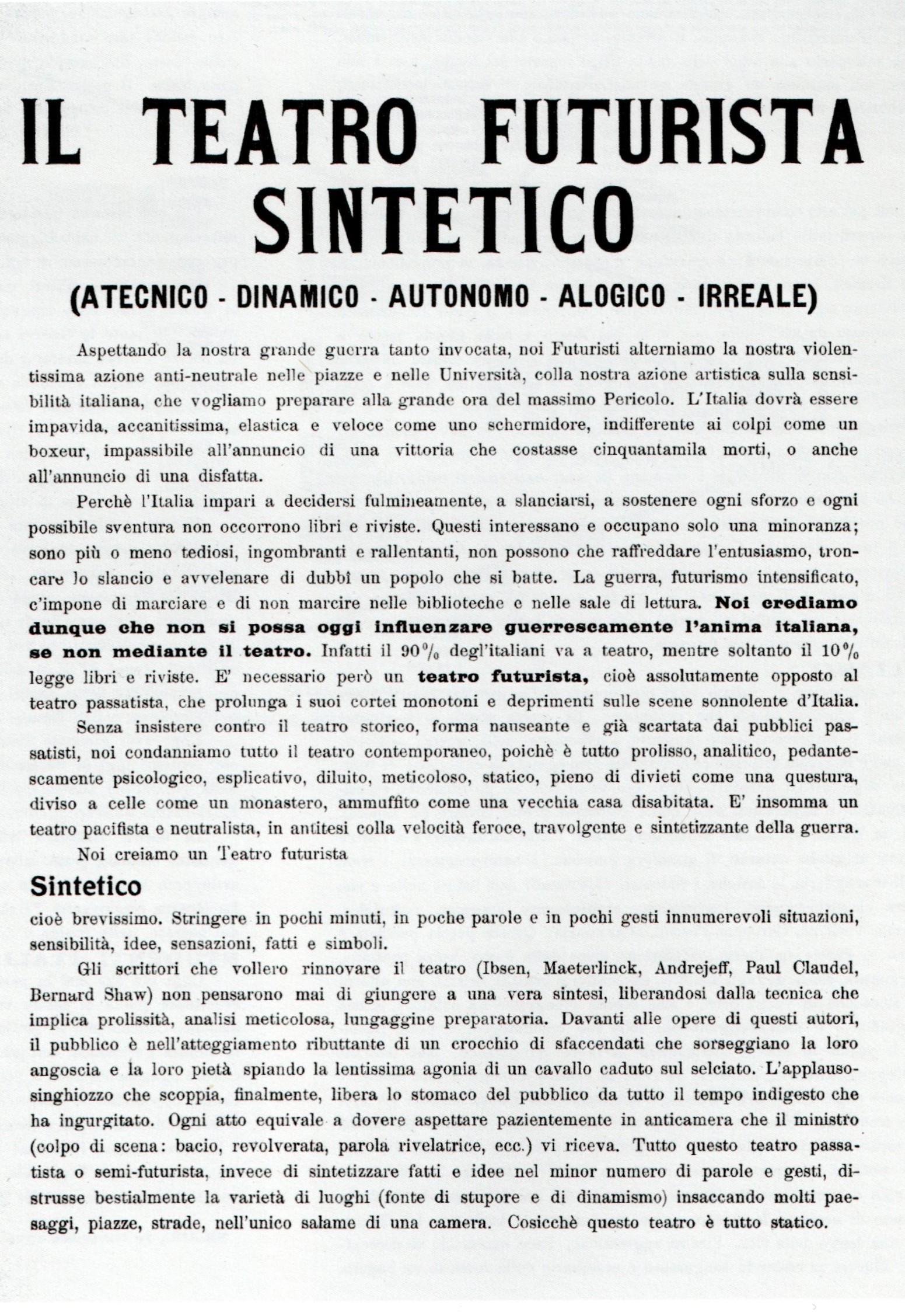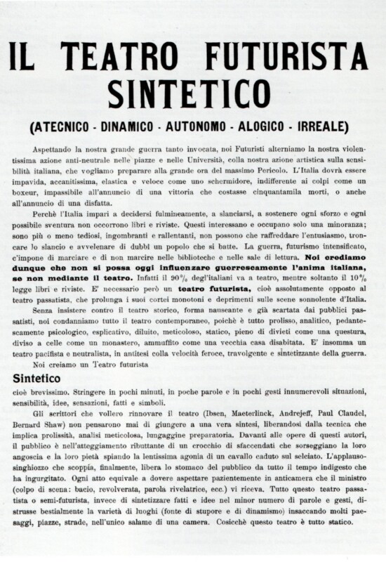 図3:マリネッティ、コッラ、セッティメッリ「未来派綜合演劇Il Teatro sintetico futurista」表紙、1915年1月11日付。
