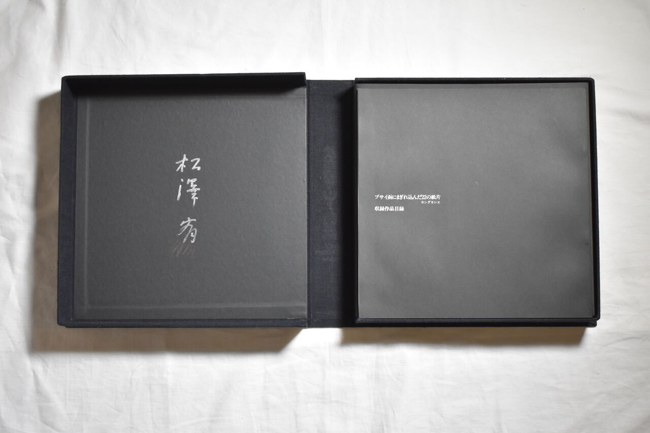 「あなたの目前にあるこの黒い函に収められているのは 一九四一年から四十年間にわたる 松澤宥の精神営為からたぐりだされた糸が あなたの想像力にからみついて 未だ人類がみたことも 読んだことも 行為したこともない 芸術を成りたたせている法則を別次元にあみあげてゆき その緻密な知の蜘蛛のあみの目にかかった乳白色の雫のレンズを通して あなたに世界をしらせる表現である」