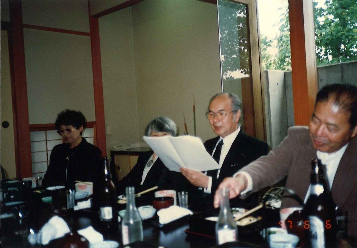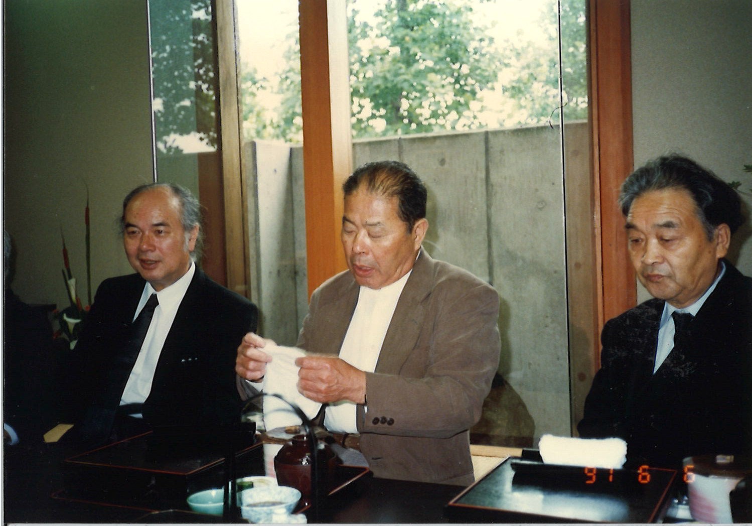 木水育男葬儀 左から高森俊、平子芳徳、谷口等 1997年6月6日