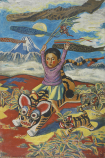 北川民次《作文を書く少女(慰問文を書く少女)》1939年 名古屋市美術館蔵