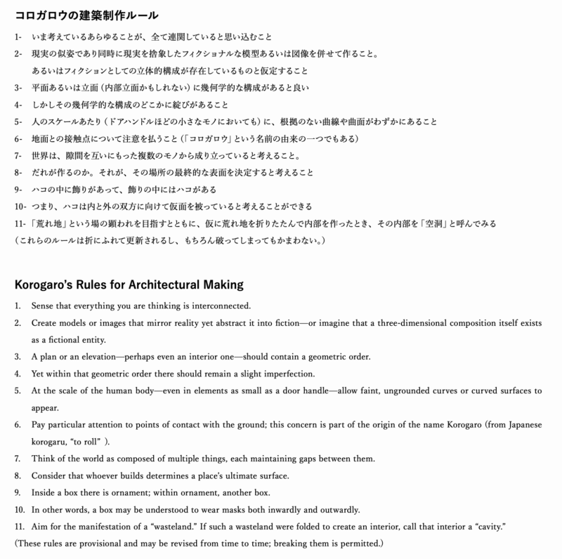 実は最近、コロガロウの建築制作ルールと題して、おぼろげで少しだけ隔たった項目をWebサイトに掲げている。 ( https://korogaro.net/ )