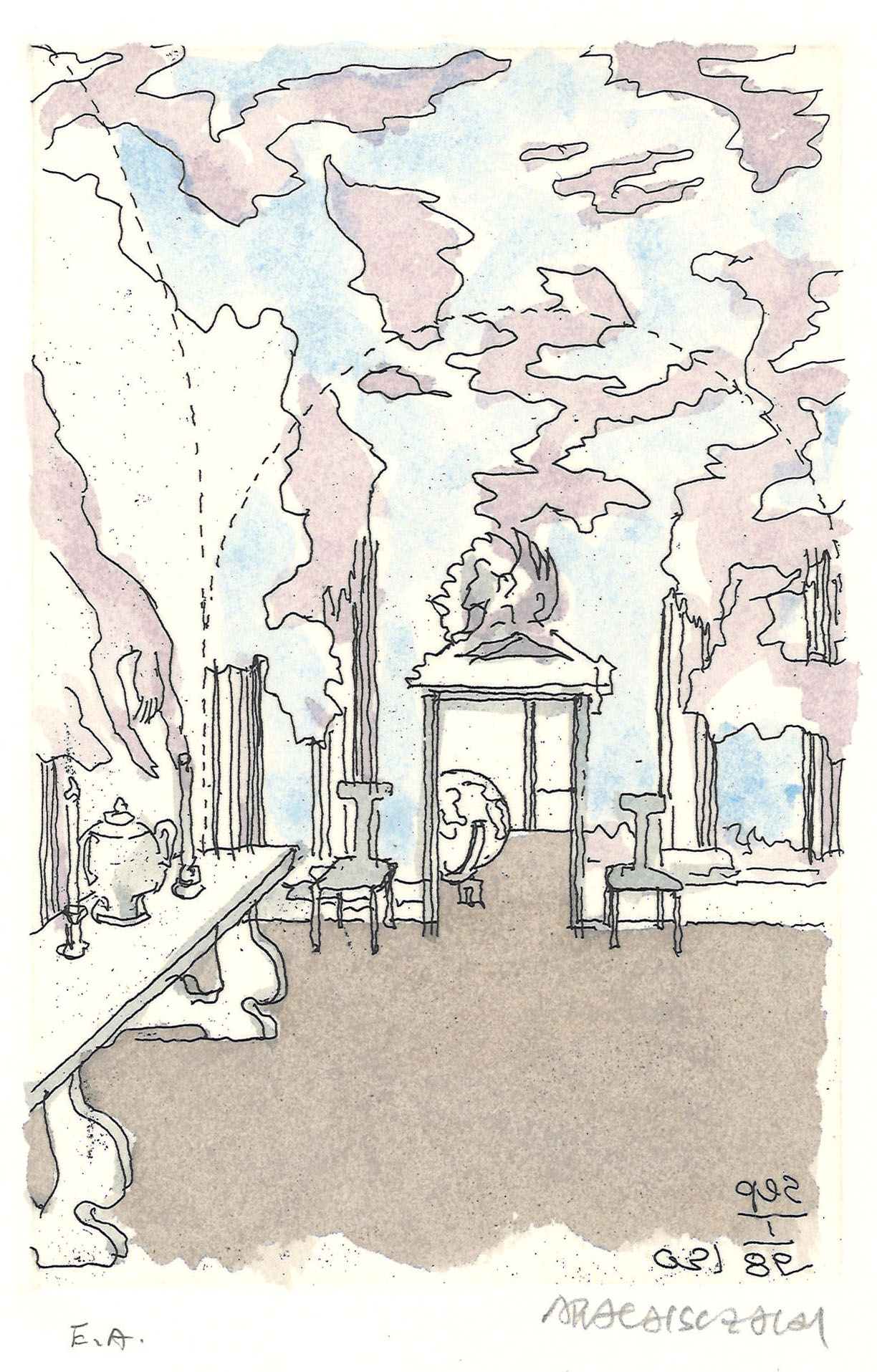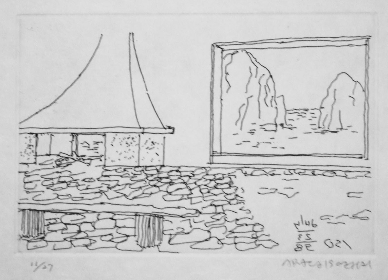 ◆「磯崎新版画集 霧」(秋吉台国際芸術村)の中の1点。