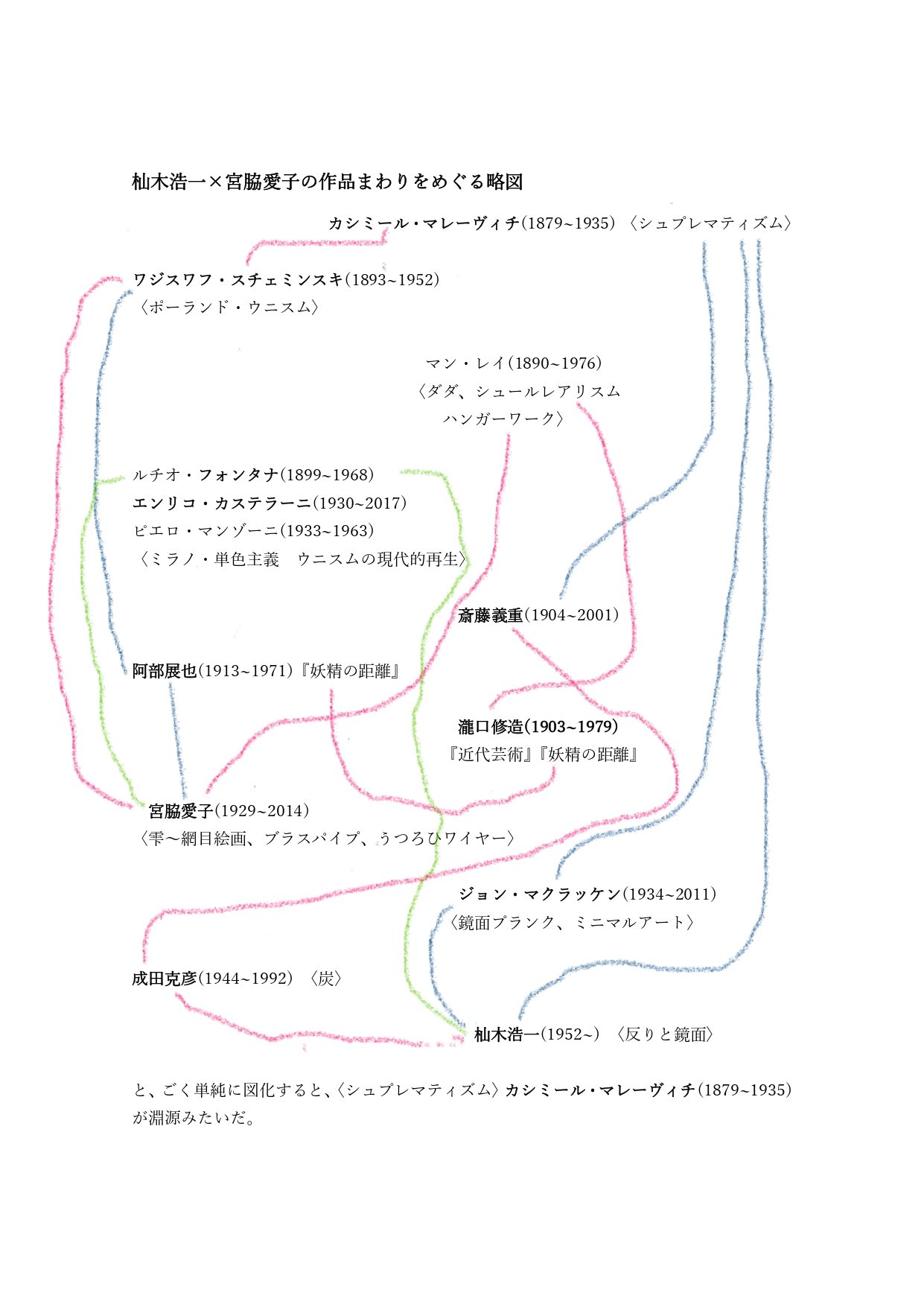 宮脇愛子も自らの油絵表現の模索のなかで、第一次世界大戦で手足損傷して芸術に転身しマレーヴィチと協働したのち「ユニスム」を標榜したシチュシェミンスキー(1893-1952)絵画の蠢くコンポジションに早くから着目していた。