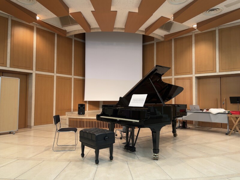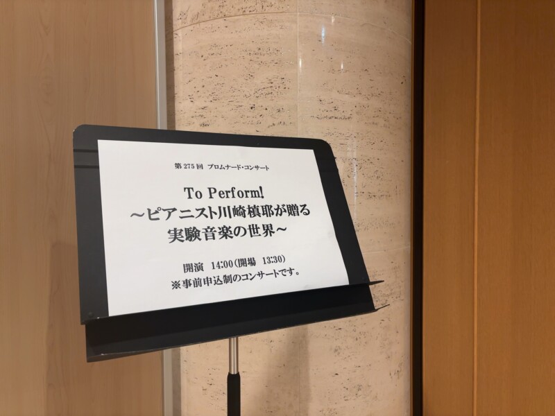 雪がちらつく中、砧公園の中にある世田谷美術館の講堂にて、川崎槙耶さん出演の「プロムナード・コンサート 第275回 To Perform! ~ピアニスト川崎槙耶が贈る実験音楽の世界~」が開催されました。賛助パフォーマーとして柴山真太朗さんも出演。