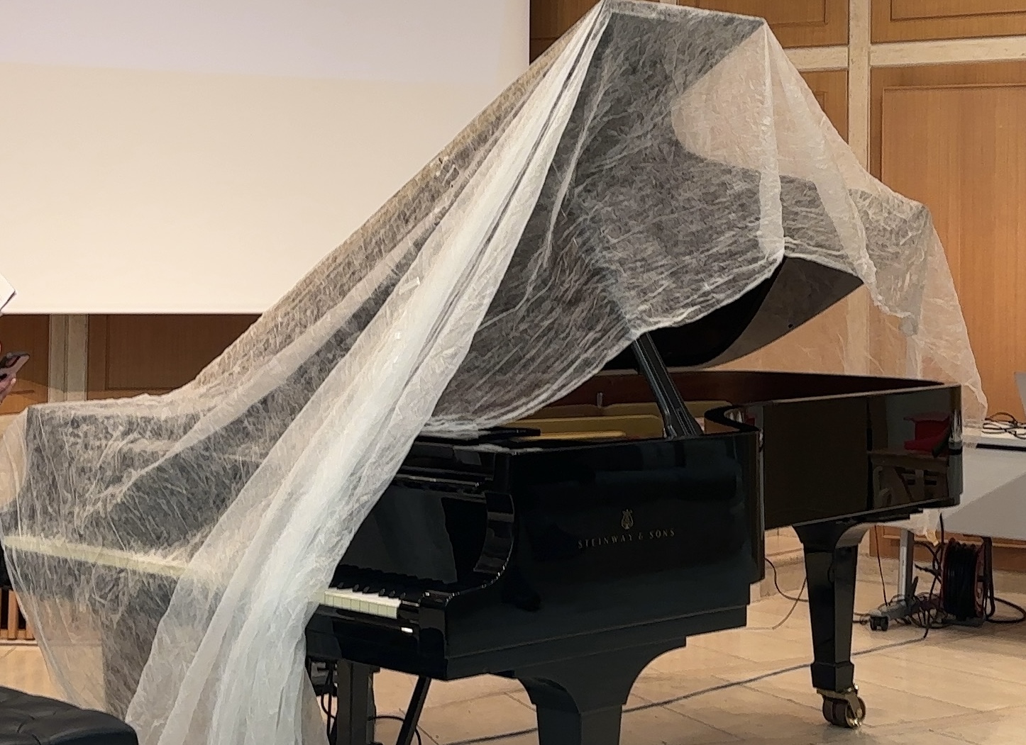 完奏後にピアノ奏者の川崎さんが脱出したので布がずれています。