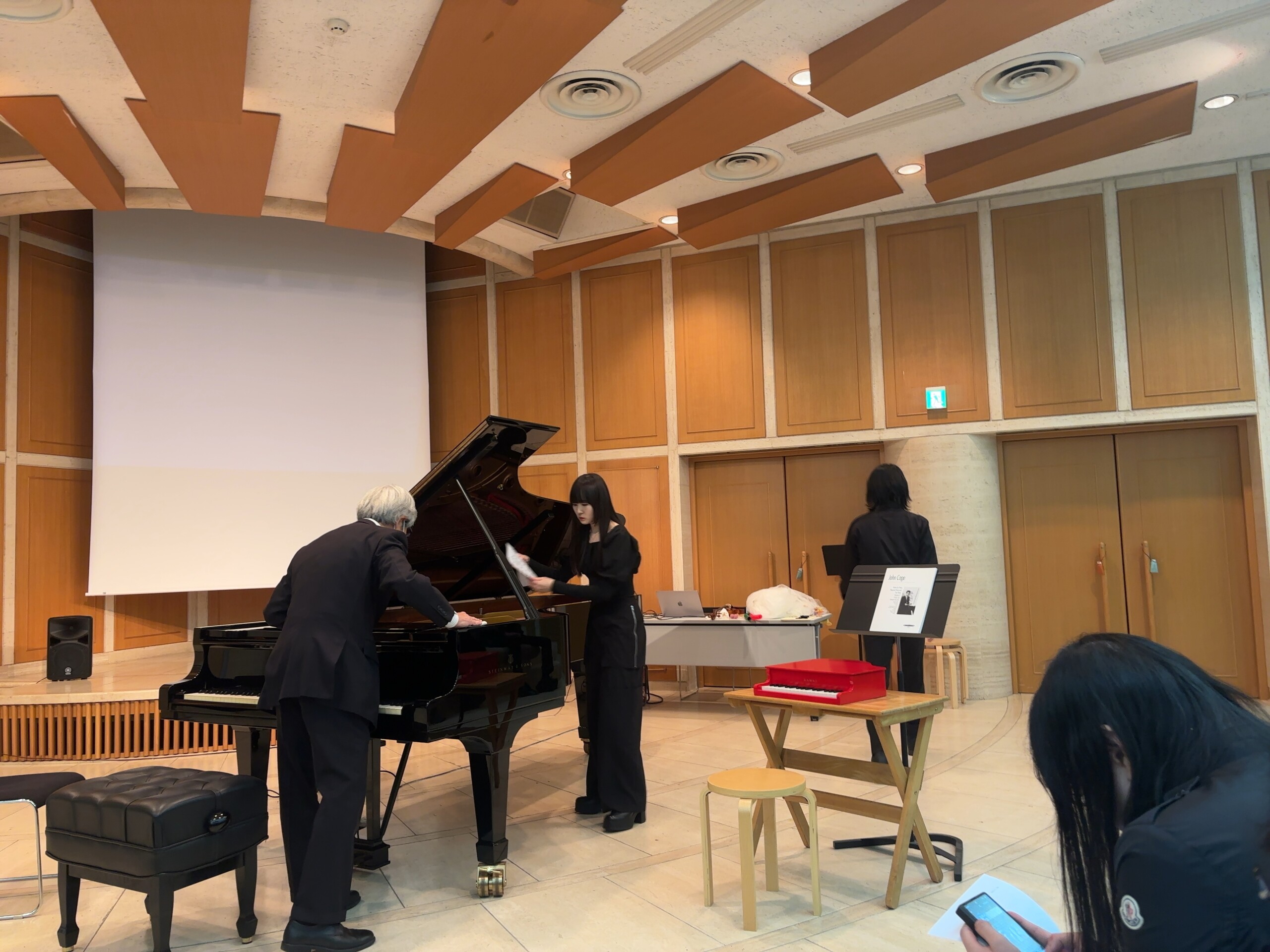 ステージ中央に運ばれてきたのは赤いトイピアノ。ケージのパートナーであるダンサーで振付家のマース・カニンガムのダンスのために作曲されたそうです。5つの小品から構成されているようで可愛らしい音色の曲が(おそらく1曲)披露されました。