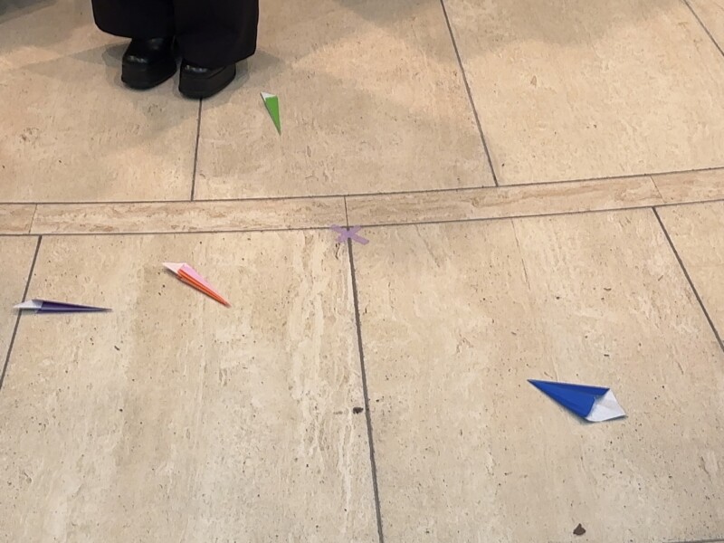 床に散らばった色紙。