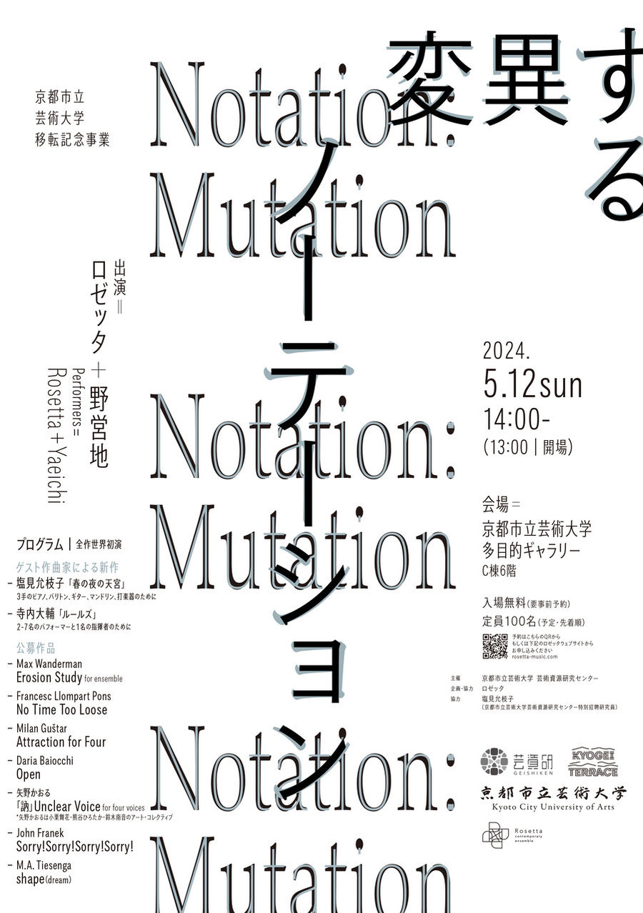 塩見允枝子演奏会「変異するノーテーション」5月12日京都市立芸術大学で