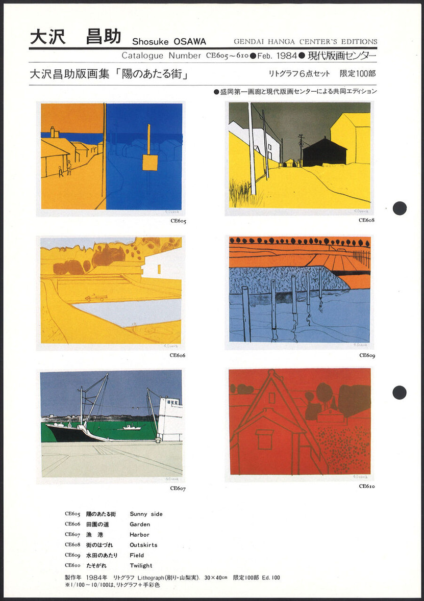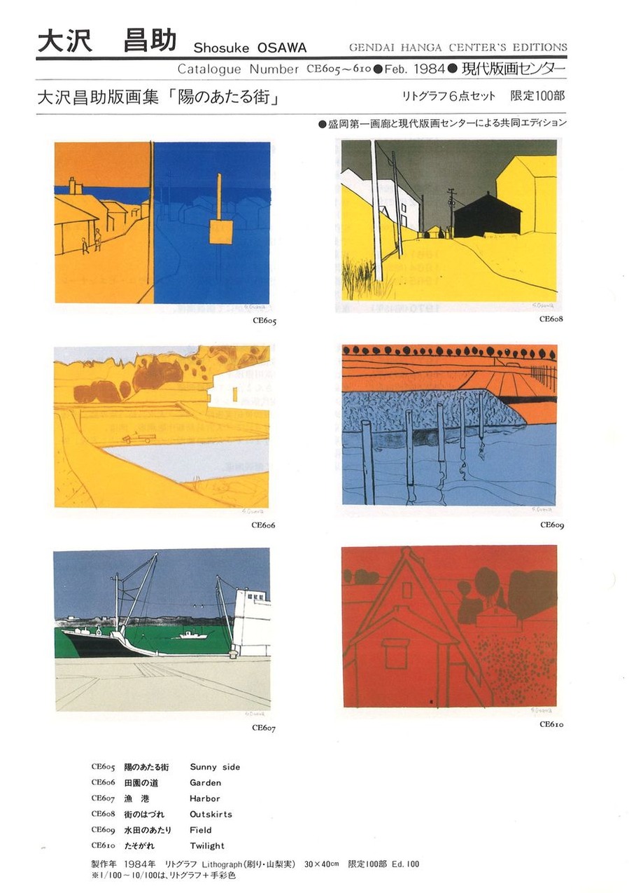 大沢昌助 版画集「陽のあたる街」より「陽のあたる街」「田園の道」「漁港」「街のはづれ」「水田のあたり」「たそがれ」現代版画センターエディション