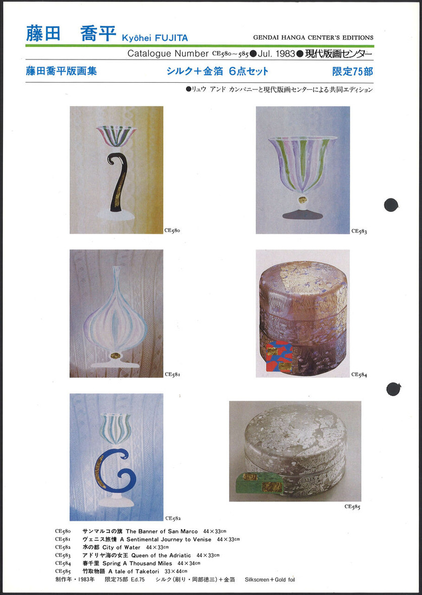 藤田喬平 版画集より:「サンマルコの旗」「ヴェニスの旅情」他4点 現代版画センターエディション