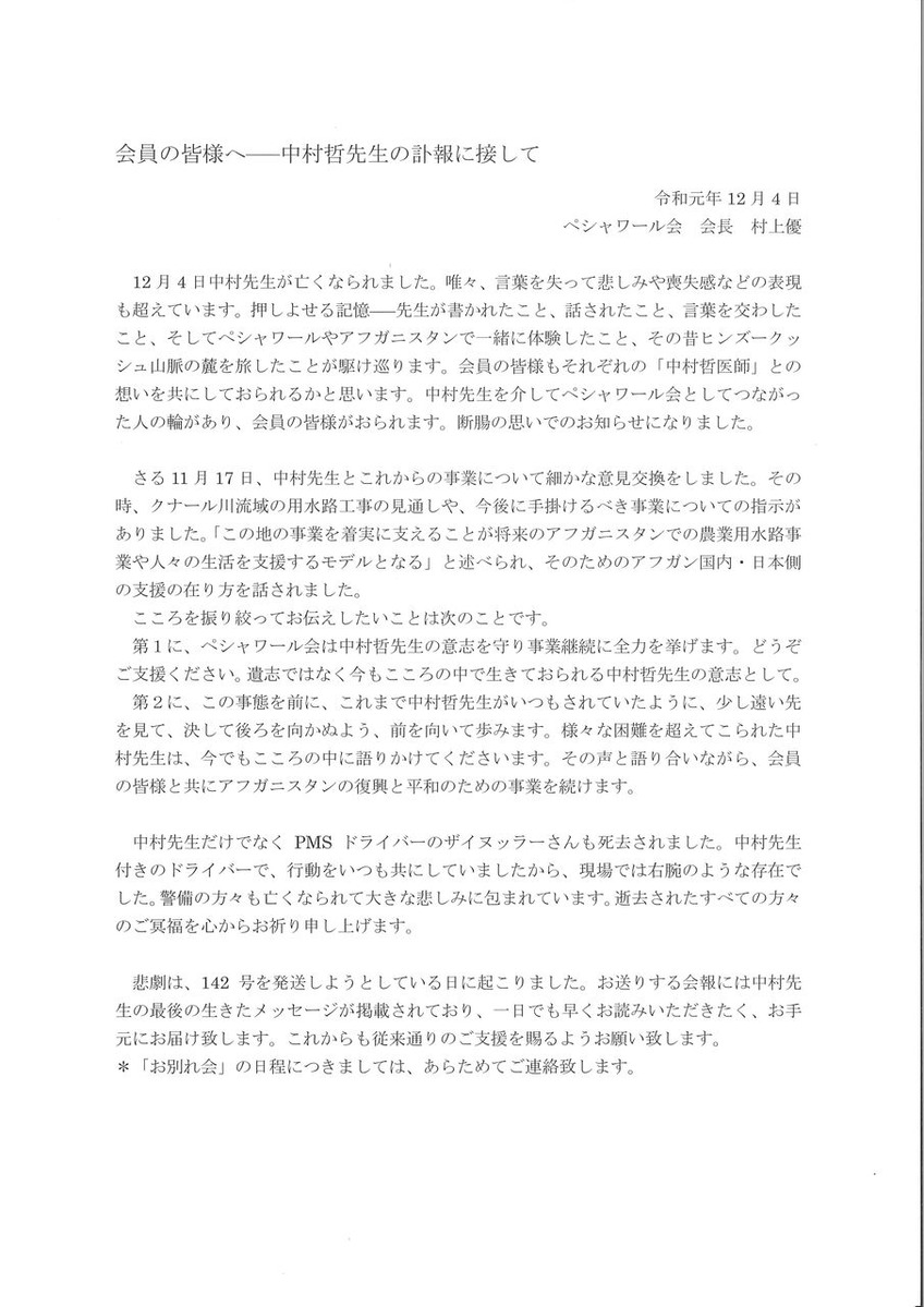 中村哲医師とペシャワール会を支援する12月頒布会のご報告