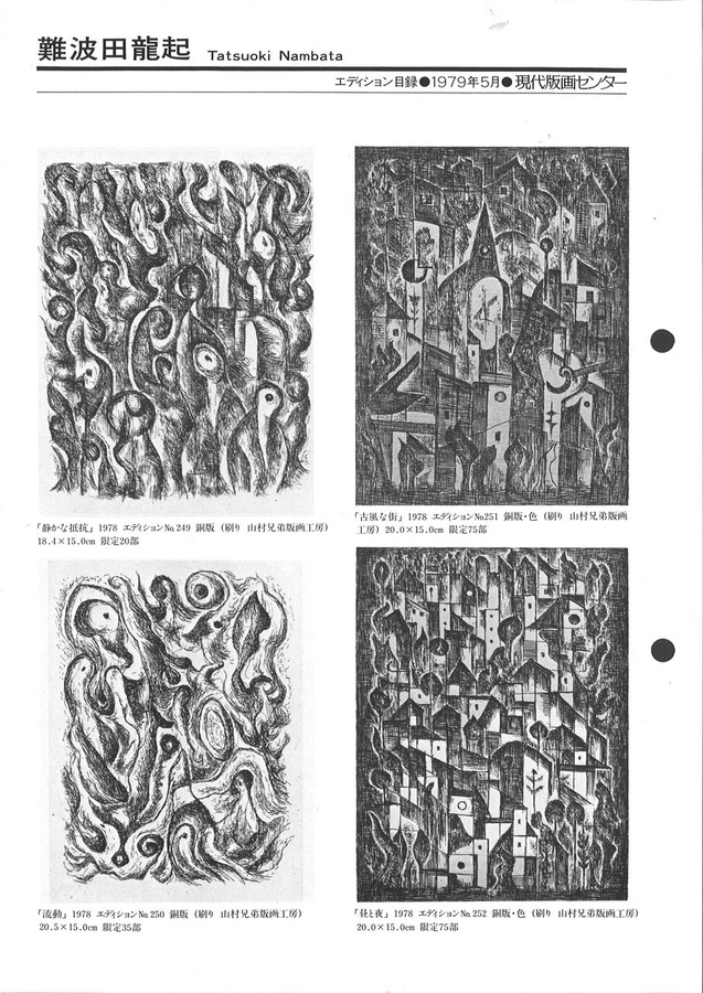 難波田龍起 銅版画「静かな抵抗」「流動」「古風な街」「昼と夜」現代版画センターエディション