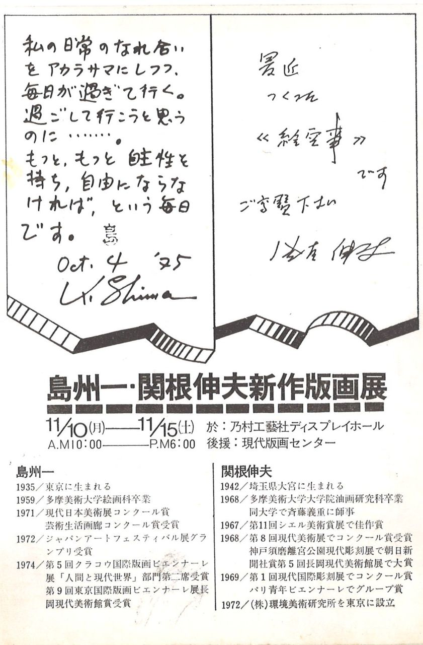 「島州一・関根伸夫 新作版画展」大阪・乃村工藝社