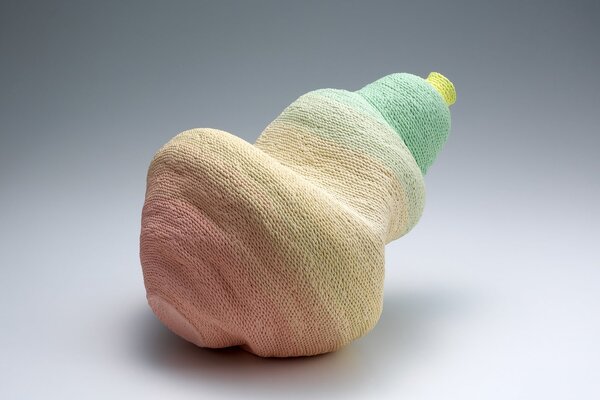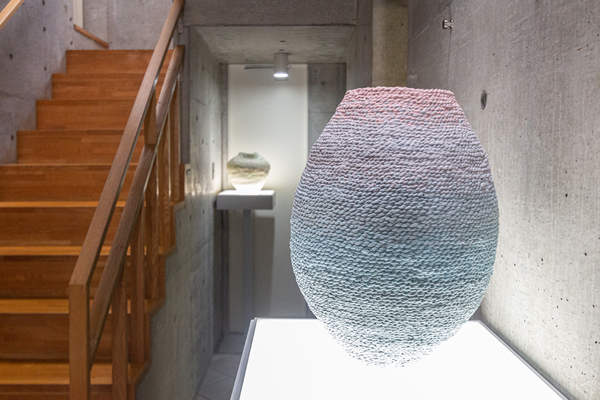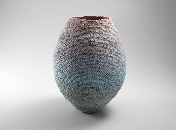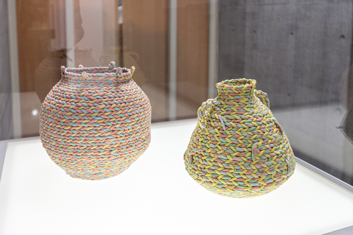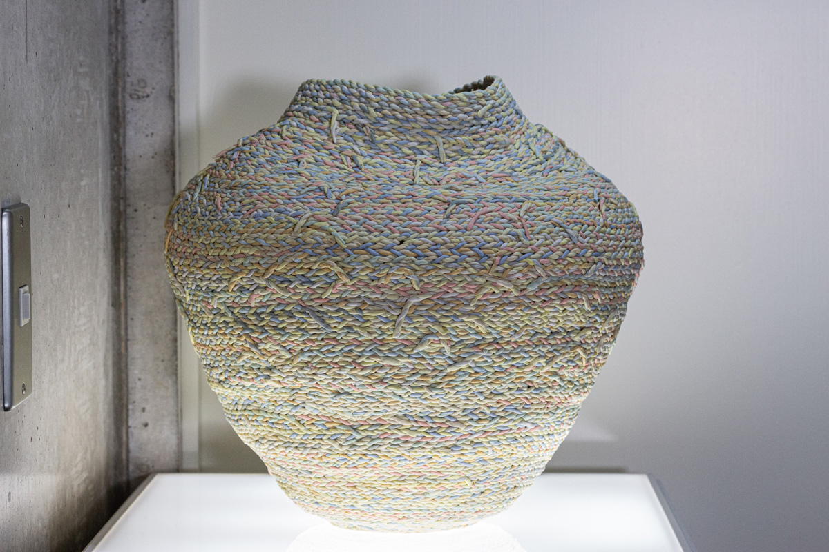 釣光穂は手びねりという陶芸の技法で、まるで編み物で編んだようなオブジェを制作しています。