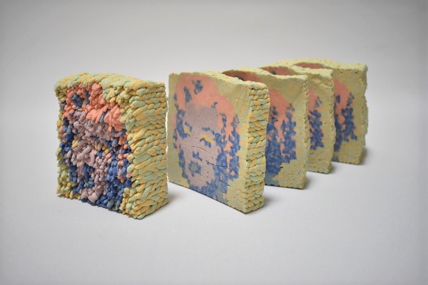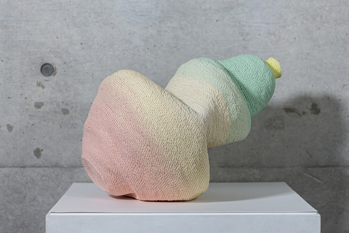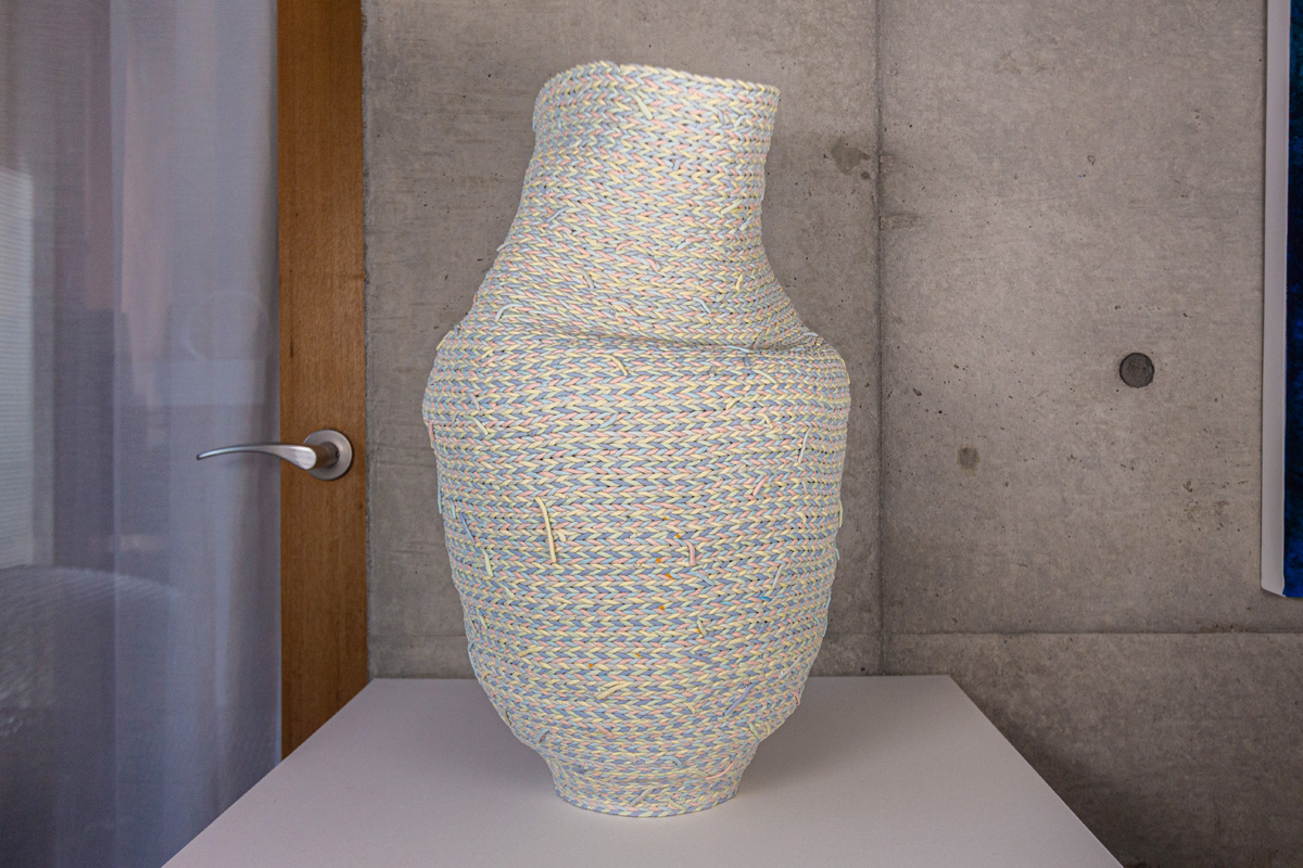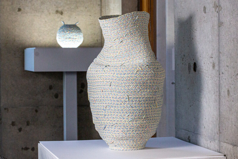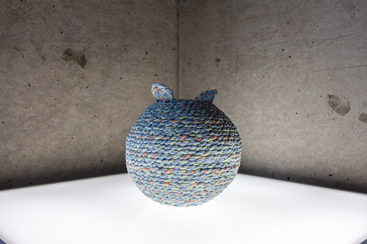 釣光穂は手びねりという陶芸の技法で、まるで編み物で編んだようなオブジェを制作しています。