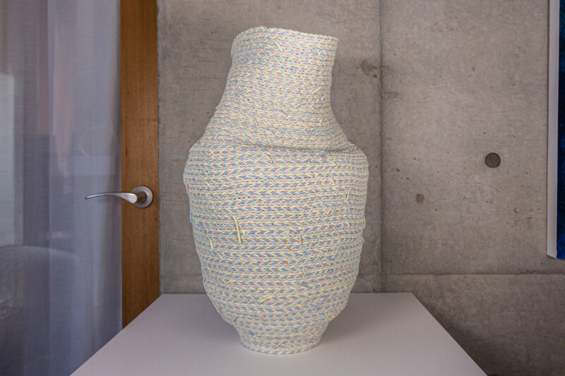 やきものの原始的な技法であるひもづくりを応用し、土を細く伸ばし撚り合せて積み上げて成形しています。