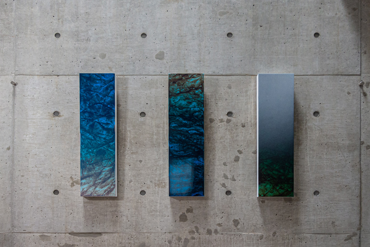 宇田義久は川の流れや水の循環など地球環境という壮大なテーマを「水槽」というシリーズで探求しています。