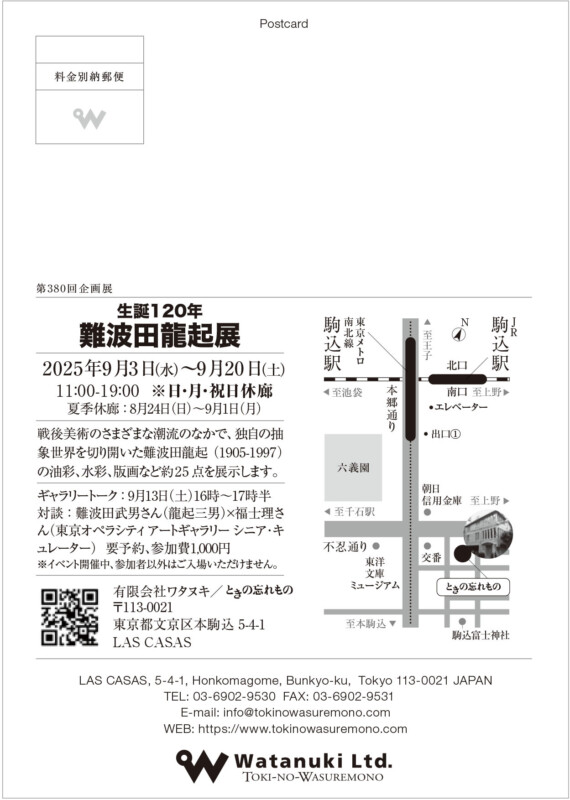 現在、東京オペラシティ アートギャラリーで難波田龍起先生の大規模な回顧展が開催されています(10/2まで)。合わせてご覧いただければ幸いです。