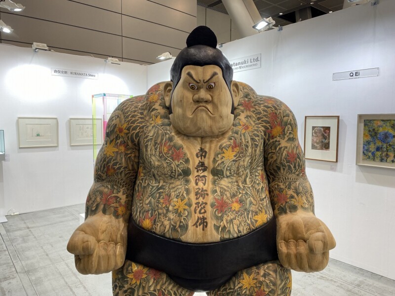 また、彫刻家・葉栗剛(b. 1957)は過去最大サイズとなる2m25cmの新作木彫《男気-魂》の制作に挑みました。迫力のある本作は楠木を使って伝統的な寄せ木造りで制作され、弟子の長崎美希による細やかな手彩が施されています。