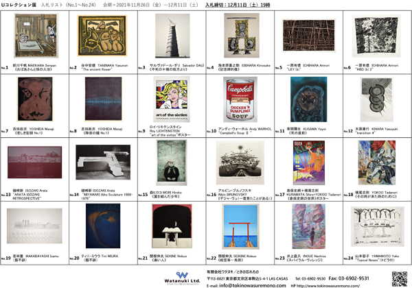 Uコレクション展入札リスト(画像をクリックすると拡大可能なPDFファイルが開きます)