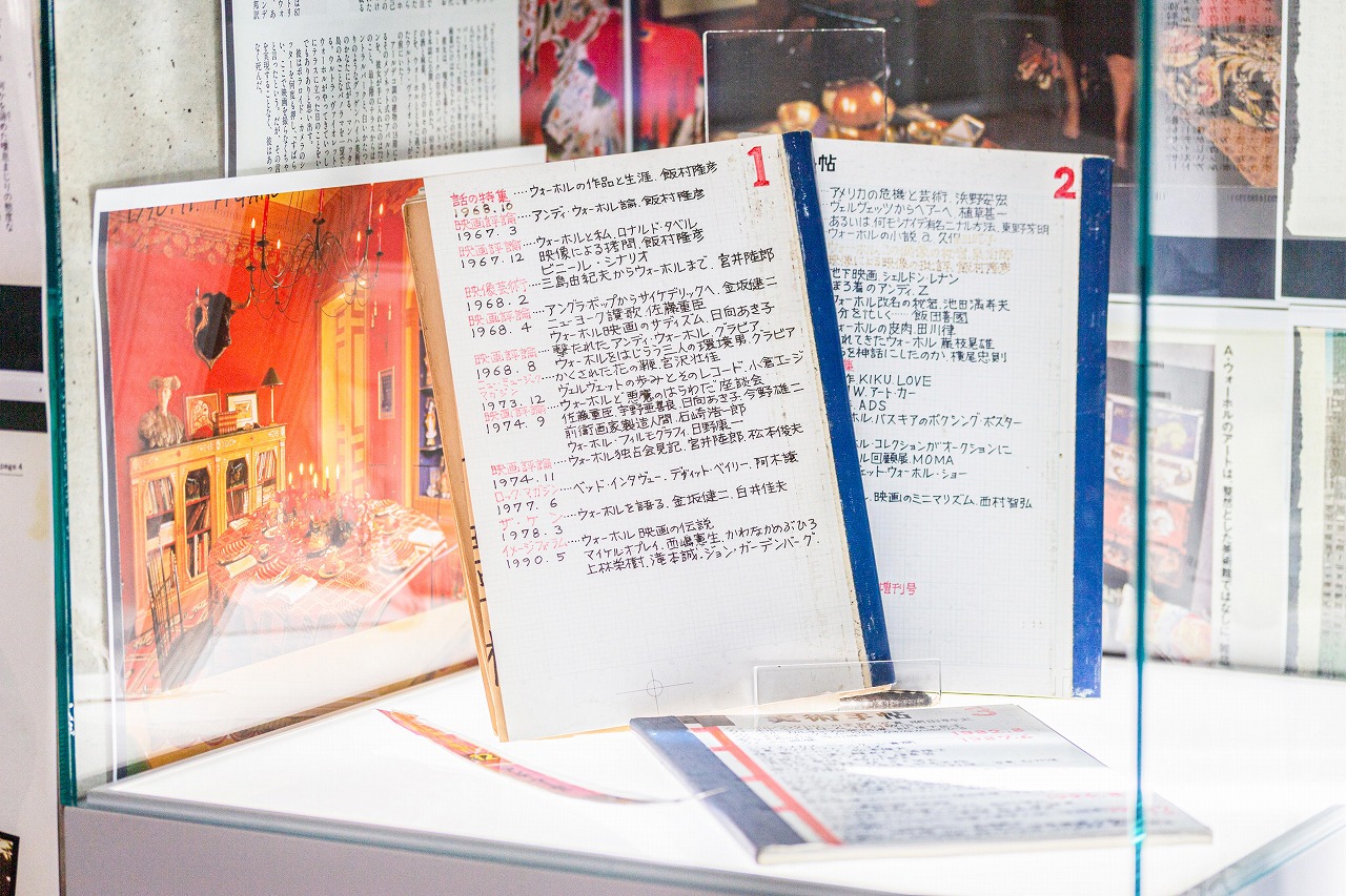 栗山は1960年代からアンディ・ウォーホルに関するカタログはもちろん、新聞、雑誌、広告、展覧会の半券、テレビコマーシャル、中には珍しいジャズ喫茶のマッチ箱まで幅広いメディアを網羅してウォーホルに関する情報を蒐集していました。遺された膨大なウォーホル資料は日本におけるウォーホル受容史の貴重な記録であり、1983年に現代版画センターが企画した「アンディ・ウォーホル全国展」はじめ、その後のウォーホル回顧展の重要な基礎資料としても使われています。