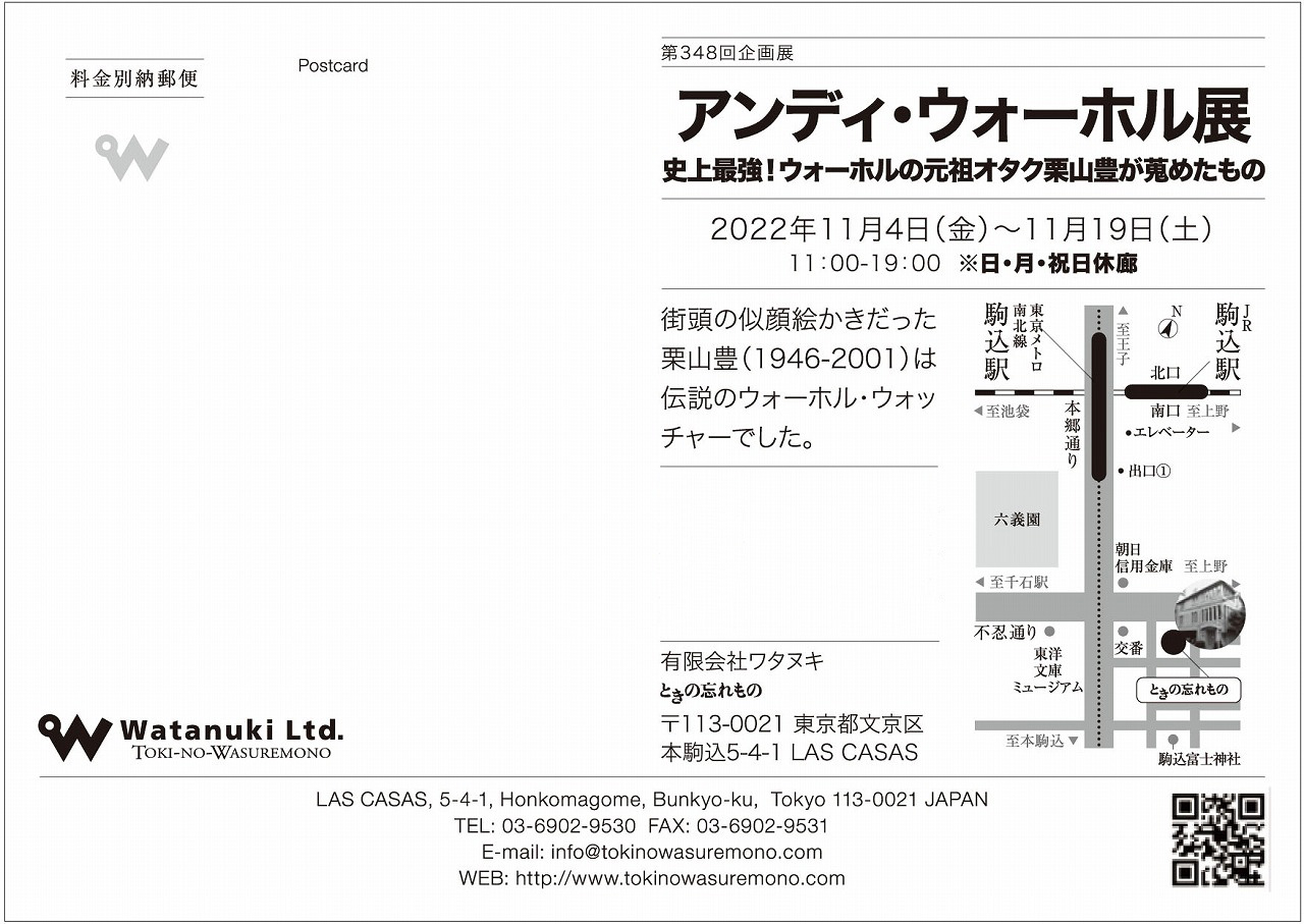 2001年2月22日奇しくもウォーホルの命日に路上で倒れ55歳の生涯を終えた栗山豊(1946-2001)は、新宿などで夜の街角に立つ似顔絵かきでした。