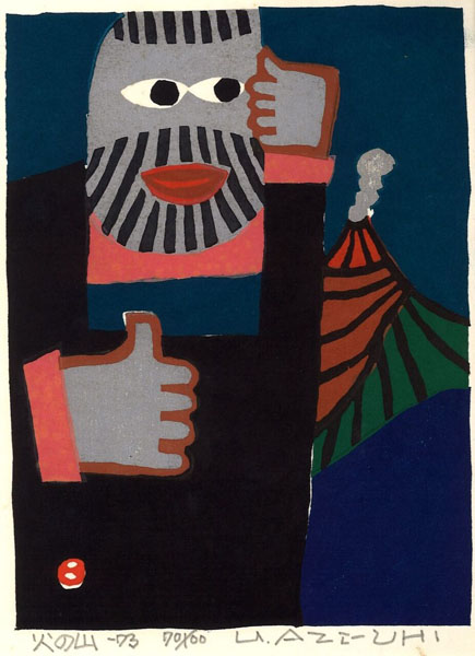 畦地梅太郎版画集『山男誕生』より《火の山》 畦地梅太郎 この作品について問い合わせる 1973年 木版多色 23.1×17.2cm Ed. 100 サインあり *レゾネ『畦地梅太郎全版画集』(町田市立国際版画美術館、1991)No.388-1 この作品について問い合わせる