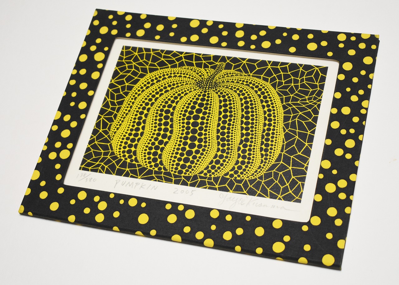 ※草間彌生が描いたデザインをシルクスクリーンプリントで綿布に刷りケースに使用