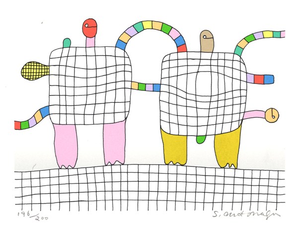 《いいせんいってる》 元永定正 この作品について問い合わせる 1988年 シルクスクリーン イメージサイズ:18.0×25.0cm シートサイズ:26.8×34.0cm Ed.200 サインあり この作品について問い合わせる